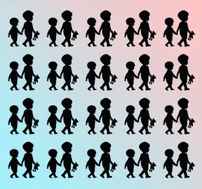 The image shared above depicts a grid containing identical-looking silhouettes of two small boys, with one of them carrying a toy in hand.