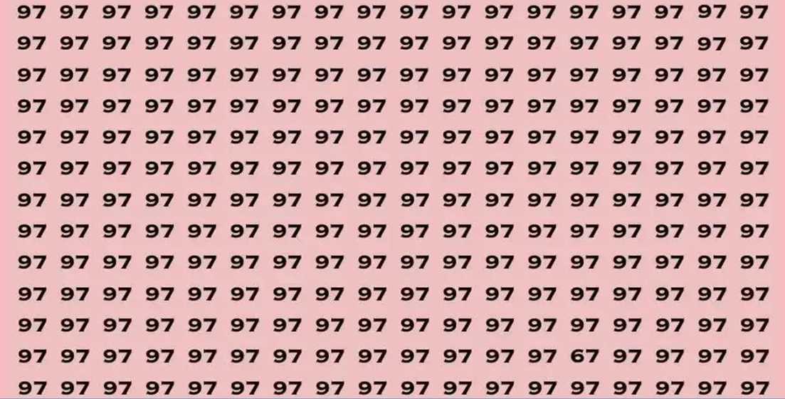 Visual illusions are images that trick the human brain and eyes. These puzzles are a great medium for testing the visual acuity of an individual. In today’s visual illusion puzzle, the readers need to find 67 among 97’s. Can you find it in 6 seconds? Test your observation skills with this visual illusion challenge now!