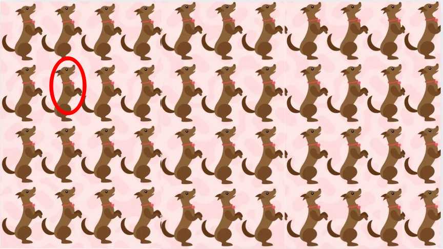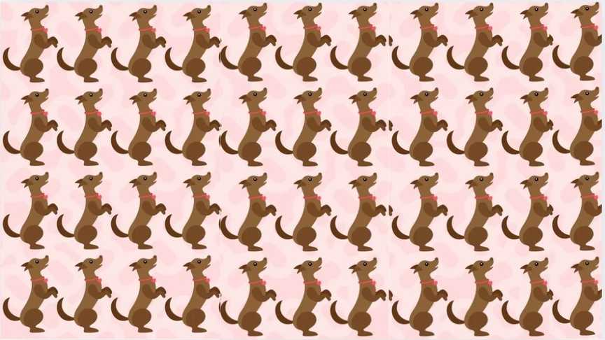 The visual illusion image shared above depicts an illustration of dogs. All the dogs appear to be identical in the picture at first glance. However, one is different from the others. The challenge is to find the different dog in 7 seconds .