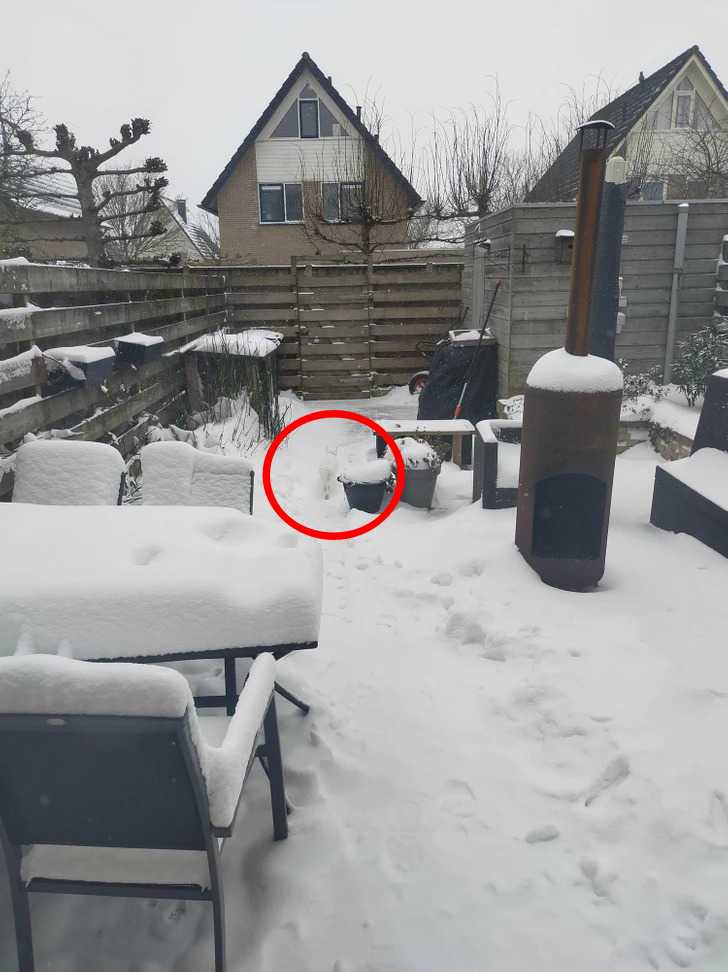 In this visual illusion picture, a snowy scene is presented before the readers. At first glance, the picture appears to be the backyard of the house. Hidden in the backyard is a cat. You need to find the cat in 5 seconds.