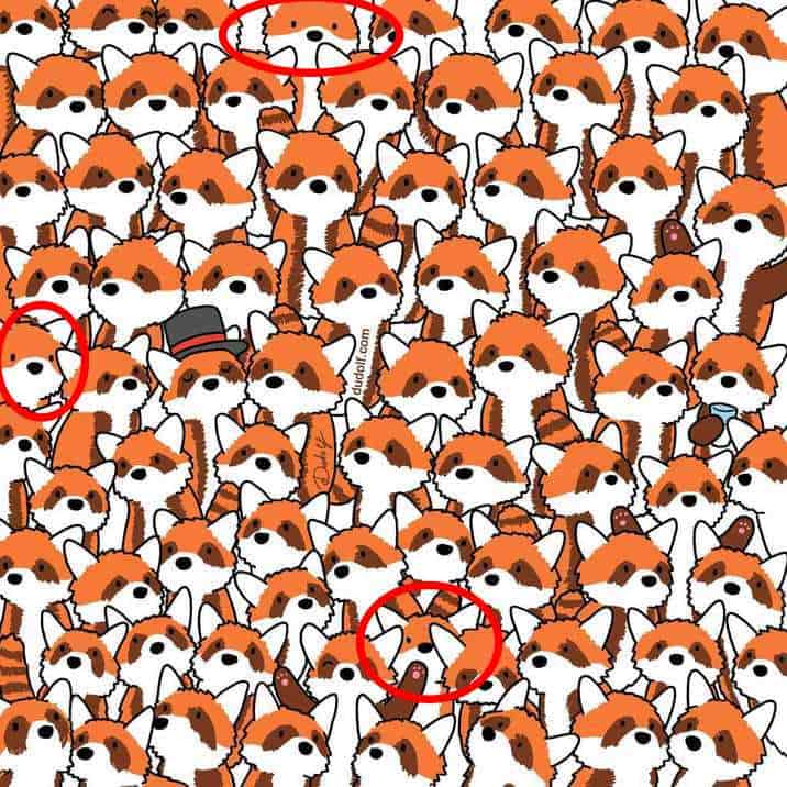 Hidden among the red pandas are three red foxes. The challenge is simple; you need to find the red foxes in 9 seconds. Can you?