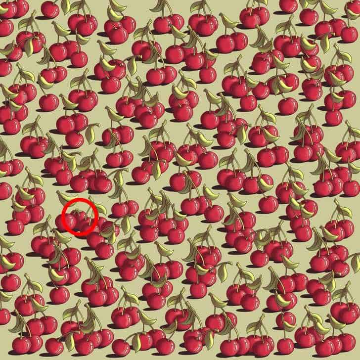 Visual illusion puzzles are puzzles that test the visual acuity of an individual. The object will be hiding in plain sight in the image and the challenge is to spot the hidden object. In today’s visual illusion puzzle, a tomato is hidden expertly among the cherries. Can you find the toamto in 9 seconds? Test your observation skills with this visual illusion challenge now!