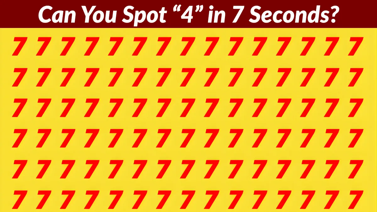 This viral visual illusion IQ test has made people around the world scratch their heads in disbelief. Hiding in the simple grid of identical numbers (7) is an impostor (4). Your challenge is to find the different number in 7 seconds.
