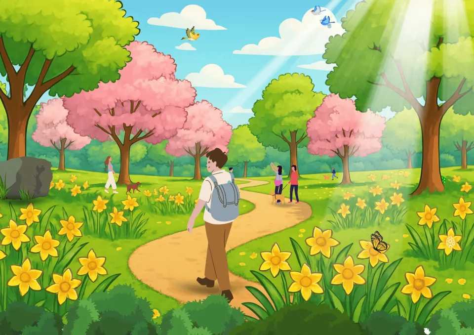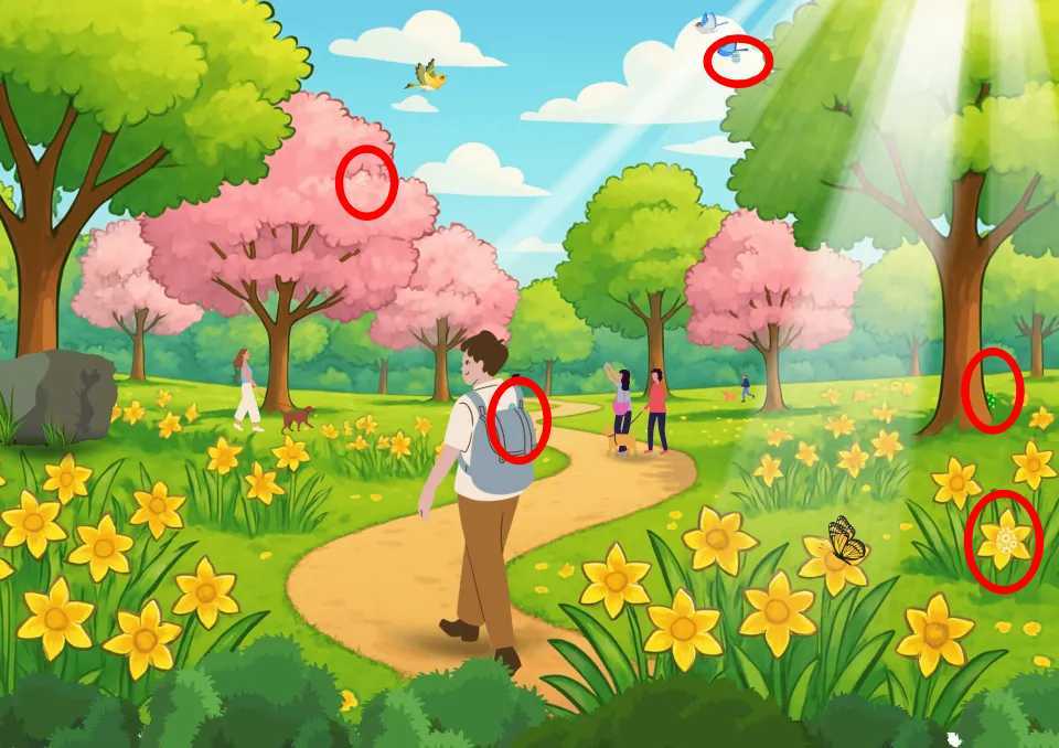 In this visual illusion picture, a park scene is shared before the readers. People in the park are walking their pets. A guy is seen walking with a bag on his back.