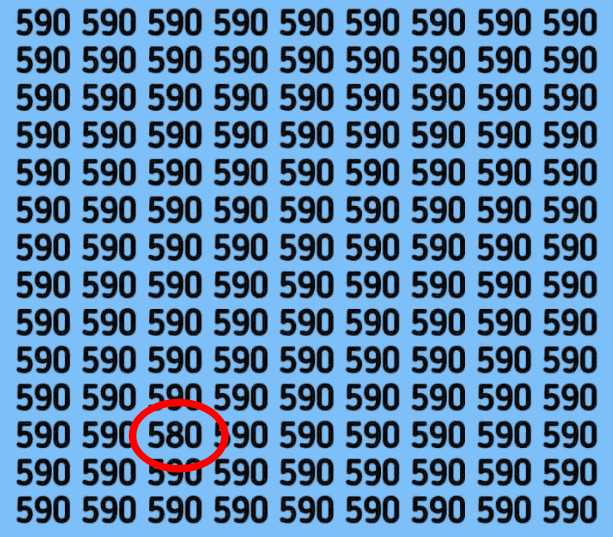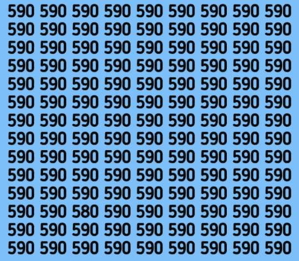 The image shared above depicts a grid full of the number 590. However, there is an exception. You have five seconds to find the number 580 hidden in plain sight within the grid.