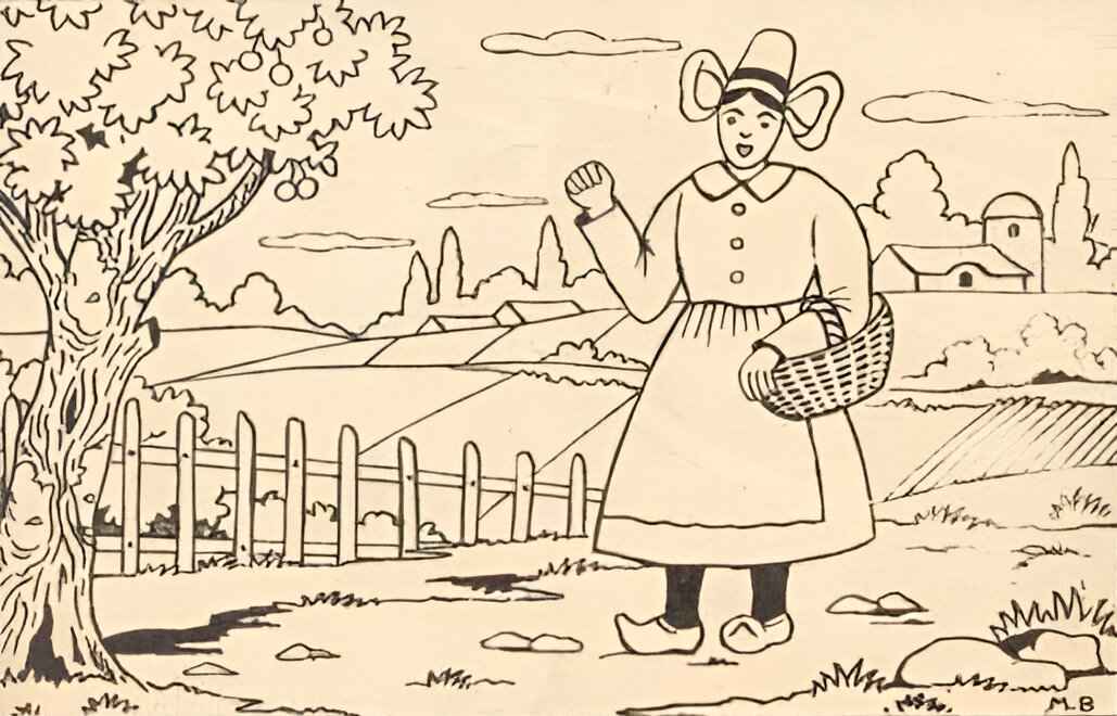 The image shared above depicts a vintage card where a lady can be seen standing near a tree.