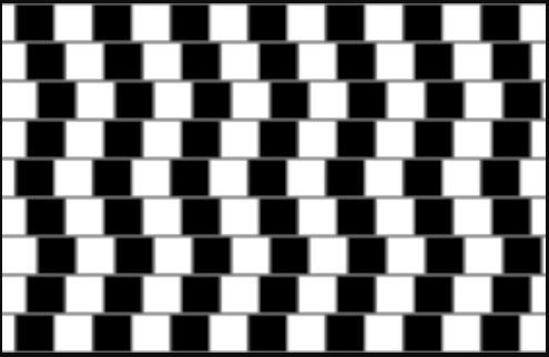 The above image is a popular and simple optical illusion that uses black and white colors effectively to confuse our perceptions of what we are seeing. As we are trying to rationalize either the black vertical lines or white vertical lines at a time, so we are unable to make sense of the untidiness of the columns. Our eyes perceive that the horizontal lines are sloping downwards. This is because our eyes naturally follow the powerful vertical lines.