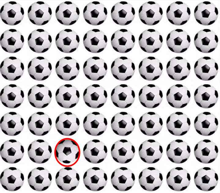 One of the soccer balls is different when compared to the rest in the picture, and the challenge for the readers is to spot that soccer ball in 6 seconds.