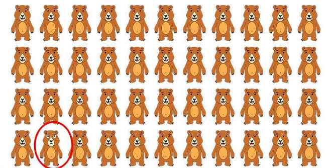 One of the bears is different from the rest in the picture, and the challenge for the readers is to spot it in 5 seconds.