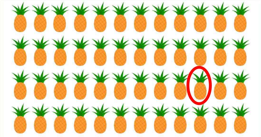 One of the pineapples is different from the rest in the picture, and the challenge for the readers is to spot it in 5 seconds.