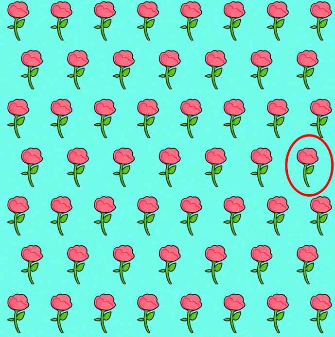 One of the roses is odd compared to the rest in the picture, and the challenge for the readers is to spot it in 5 seconds.
