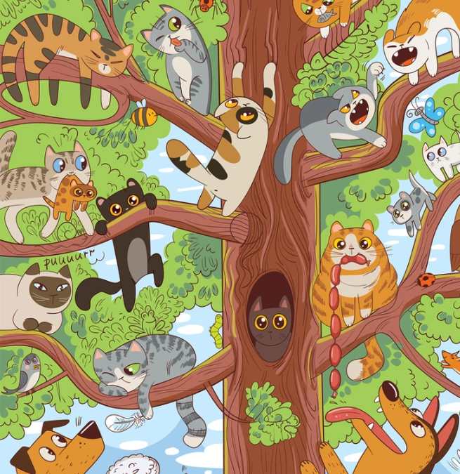 We clarified in the paragraph above that the premise of this visual puzzle is simple. All you have to do, if you want to solve this puzzle, is find the item hidden in the picture puzzle. In this visual test puzzle, you can see a group of cats on a tree. There are a lot of cats in the tree, and there is something else on this tree.