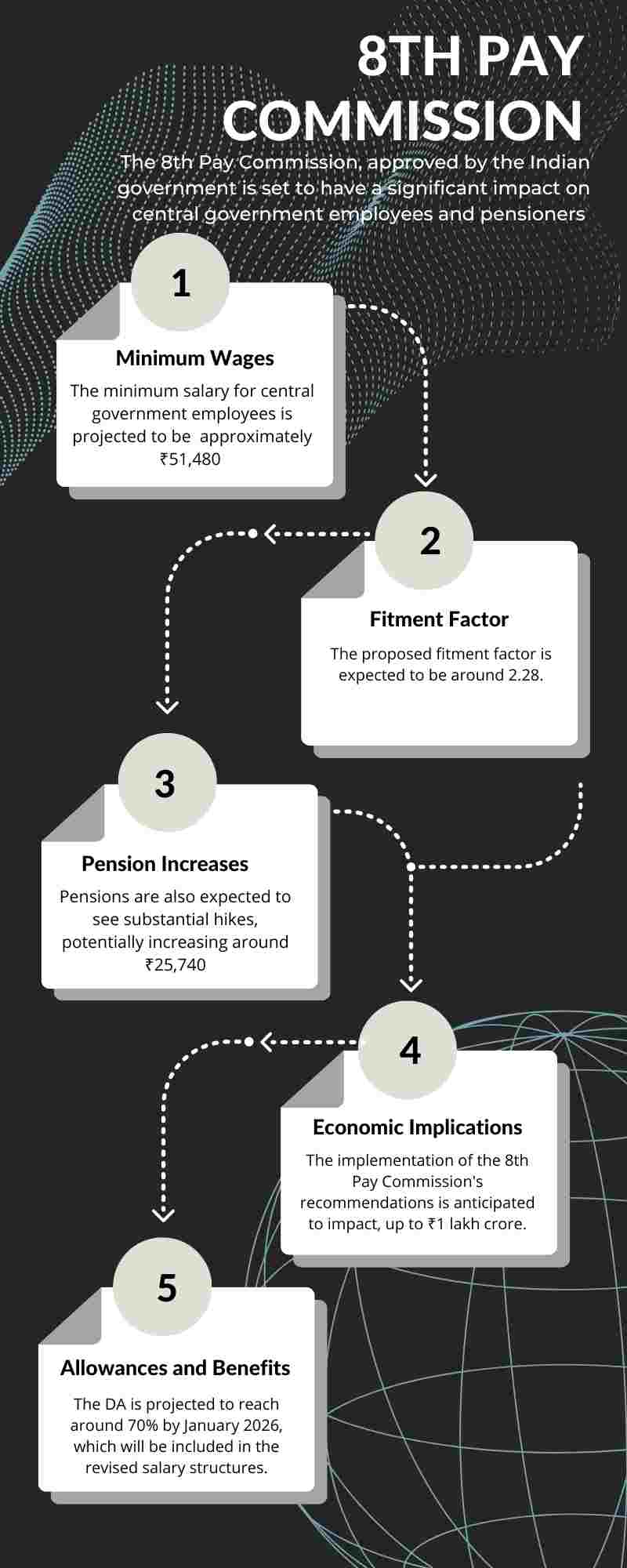 - Economic Implications: The implementation of the 8th Pay Commission's recommendations is anticipated to have a significant economic impact, similar to the previous commission, which resulted in a ₹1 lakh crore increase in salary and pension payouts in its first year.