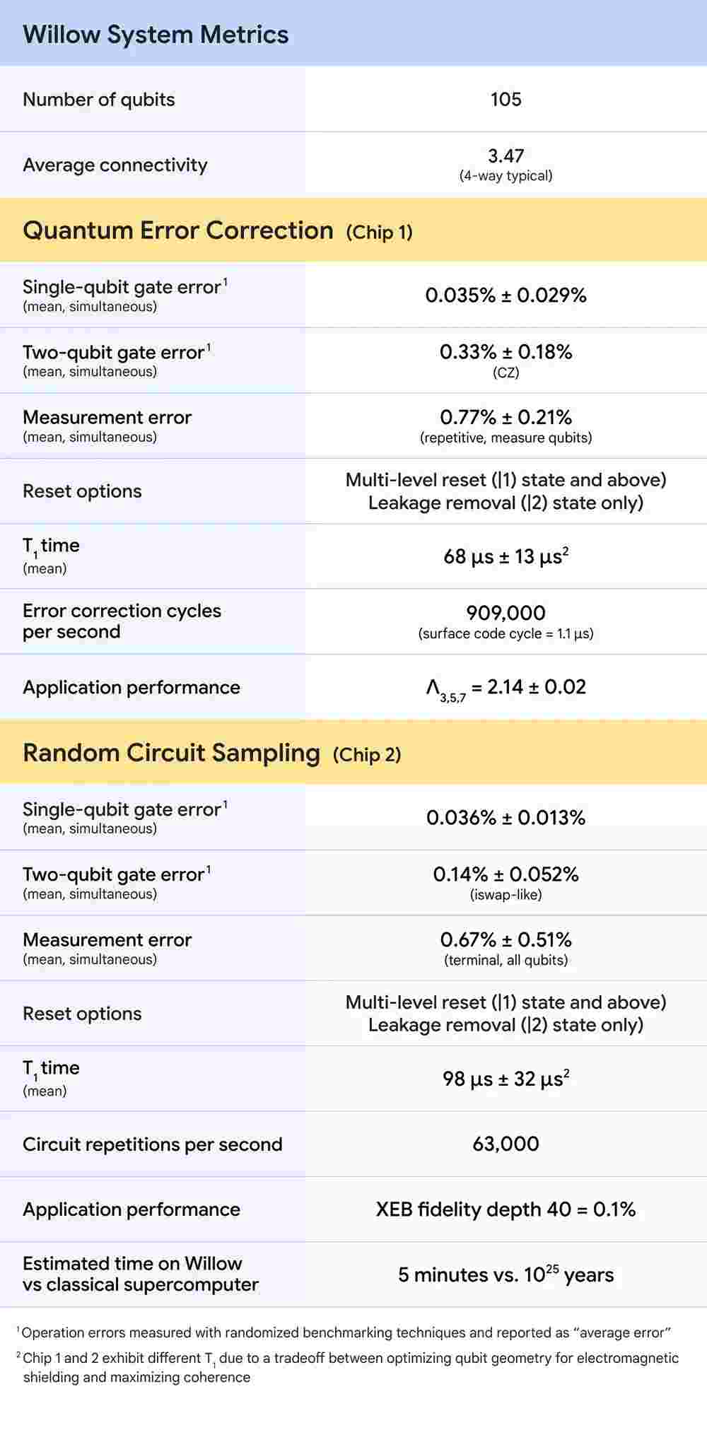 Qubit Count: Willow is equipped with 105 qubits, the fundamental units of quantum computation.
