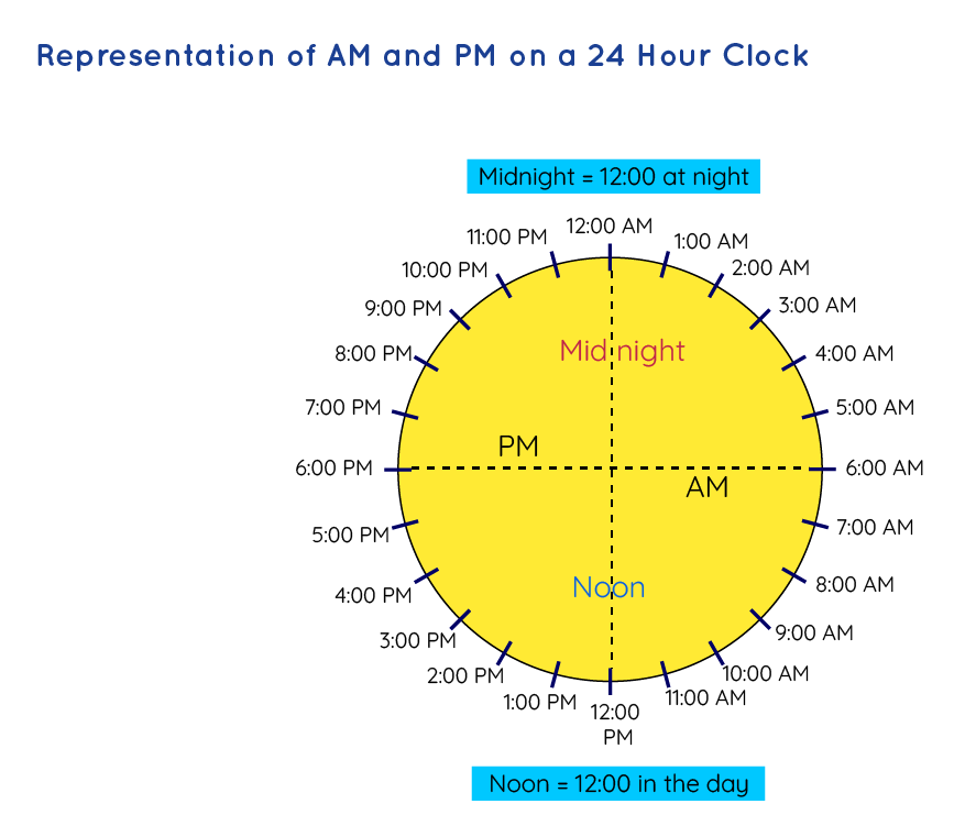 AM and PM are derived from Latin language and are used as abbreviations for the terms Ante Meridiem and Post Meridiem. AM is used to determine the time from midnight to 11:59 noon and PM is used to indicate the time from 12 noon to 11:59 midnight.