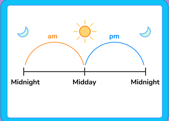 Each day has 24 hours which are further classified into hours, minutes, and seconds. For example, 9:35 means 9 hours and 35 minutes, this time can be displayed in two ways, through the 24 hour clock and the other is the a.m and p.m