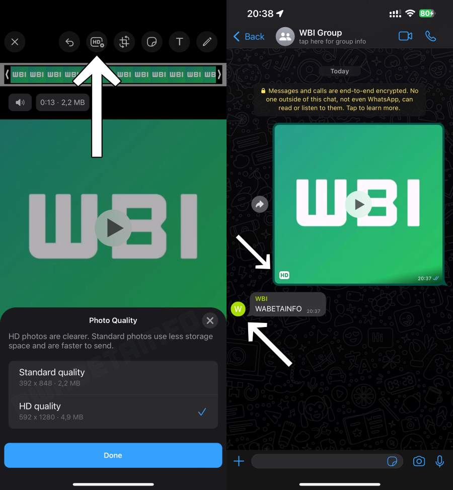 WABetaInfo mentions, “since the HD option now also appears when selecting a video from the Photos app. As we explained in our previous article where we announced the high-quality option for images, this option preserves video dimensions, but light compression is still applied to the video”.