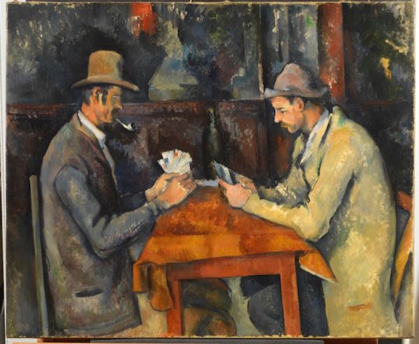 Five men, deeply engrossed in a card game, are depicted with Cézanne's signature geometric style. Renowned for its composition and psychological depth, this painting was acquired by the Royal Family of Qatar in 2011, reflecting their growing art collection.