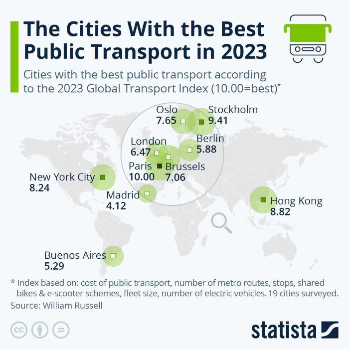 New York City is ranked fourth on the list, with a score of 8.24 out of 10. The city's public transportation system is known for its comprehensiveness and affordability.