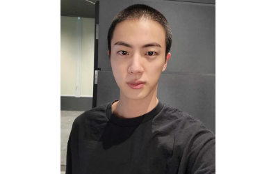 Before leaving for military service, Jin shaved his head and posted a selca on Weverse with the caption “He he he. It's cuter than I had expected.”