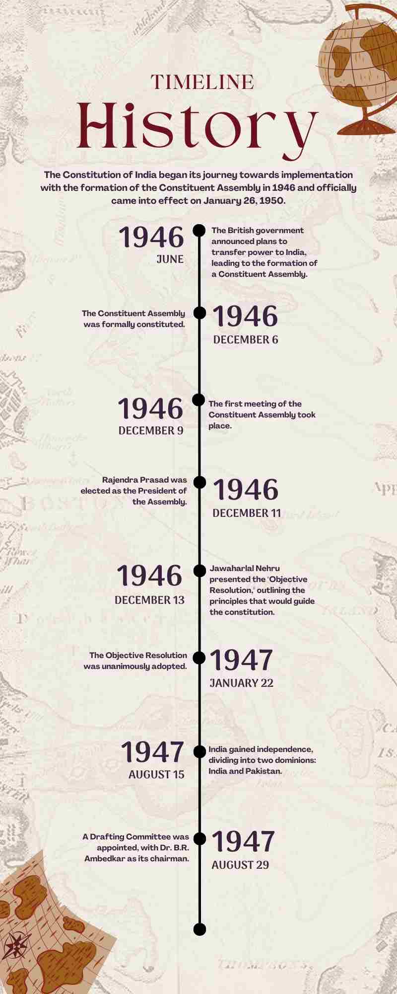 - Formation of the Constituent Assembly: In 1946, the Constituent Assembly was formed to draft the constitution. This assembly included representatives from various political parties and communities across India, reflecting the diverse fabric of the nation.