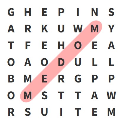 In the sixth column, the word "MODEM" appears in reverse diagonal order.