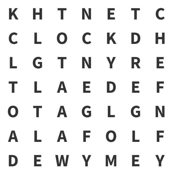 The word can be hidden in any format in the grid, e.g., top to bottom, sideways, up and down, forwards and backwards, and diagonally.