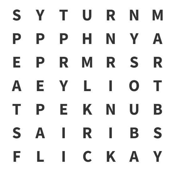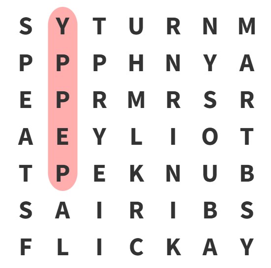 The word "PEPPY" can be spotted in a top-down sequence on the second column.