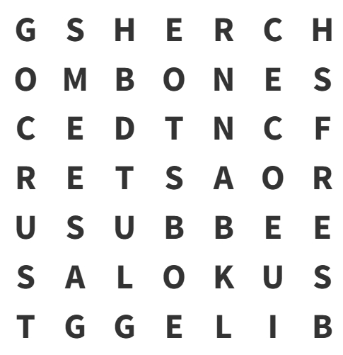 The word can be hidden in any format in the grid, e.g., top to bottom, sideways, up and down, forwards and backwards, and diagonally.