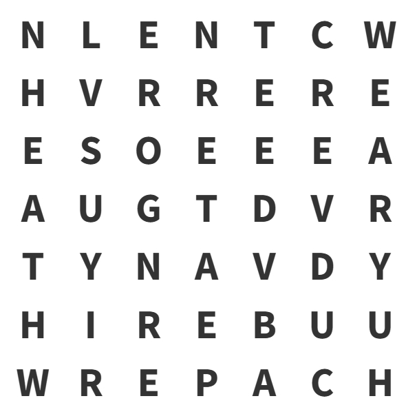 The word can be hidden in any format in the grid, e.g., top to bottom, sideways, up and down, forwards and backwards, and diagonally.