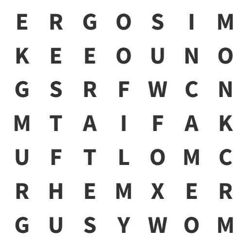 The word can be hidden in any format in the grid, e.g., top to bottom, sideways, up and down, forwards and backwards, and diagonally.