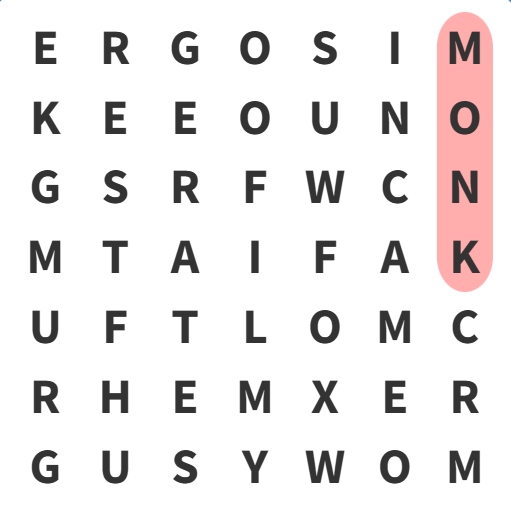 Word Search - Find Monk in 6 Seconds