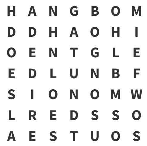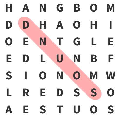The word can be hidden in any format in the grid, e.g., top to bottom, sideways, up and down, forwards and backwards, and diagonally.