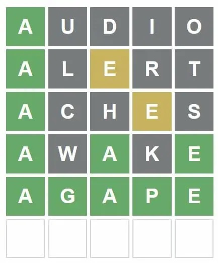 Wordle for July 7 is ‘AGAPE’.