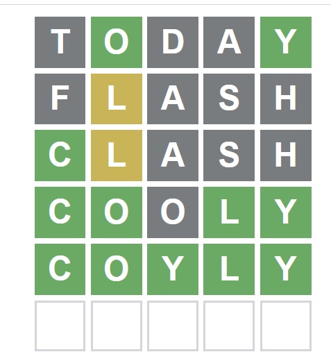 The answer for Wordle 409 is ‘COYLY’.