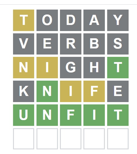 6. In the last, if the color of the box turns grey, it will mean that the letter entered is not in the word.