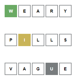 The game uses three colours, namely green, yellow, and grey, to show players whether they are on the right track or not.