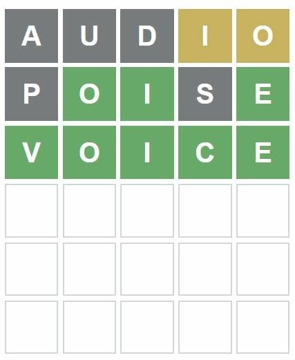 Wordle for July 8 is ‘VOICE’.