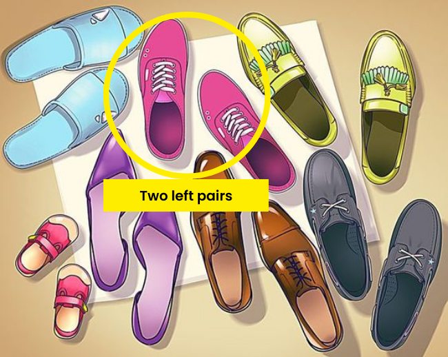 Look at the picture puzzle given above. You can see seven pairs of shoes lying on the ground. Out of those seven pairs, one of them does not have a pair. The purpose of this logic puzzle is to find which shoe in the picture does not have a pair. This test warrants exceptional observational, problem-solving, and logical skills. Do you have the said skills? This is a great way to find out what you are good at.