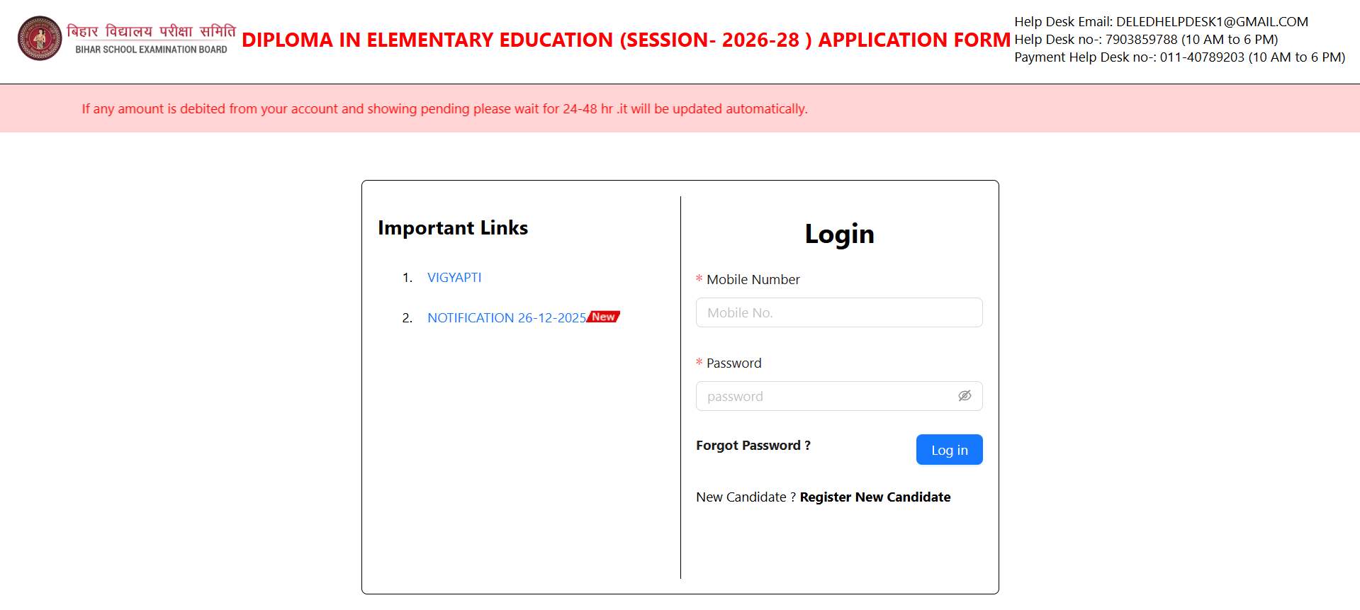 BSEB DElEd 2026 Registration - यहां क्लिक करें