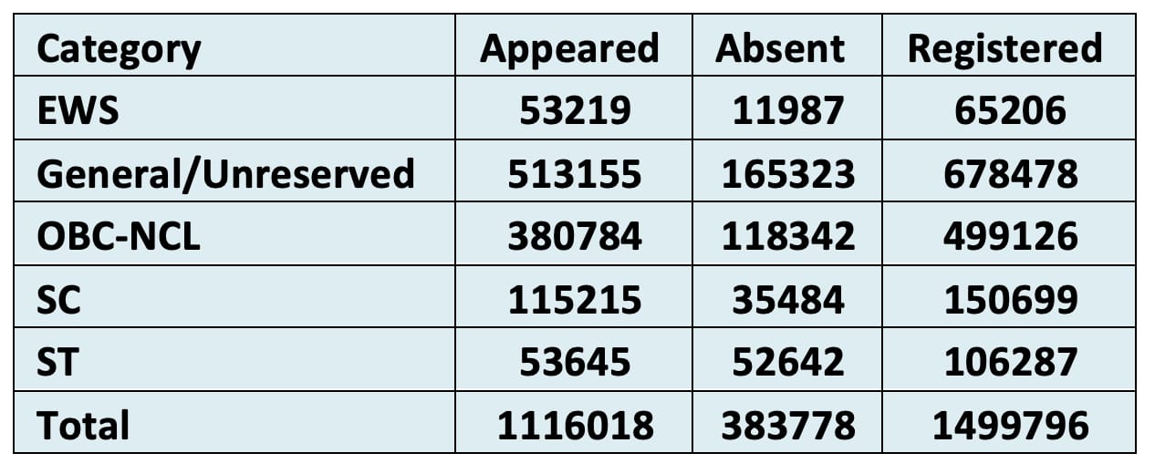 CUET UG 2023: Category-wise Number of unique Candidates Registered and Appeared for CUET UG 2023
