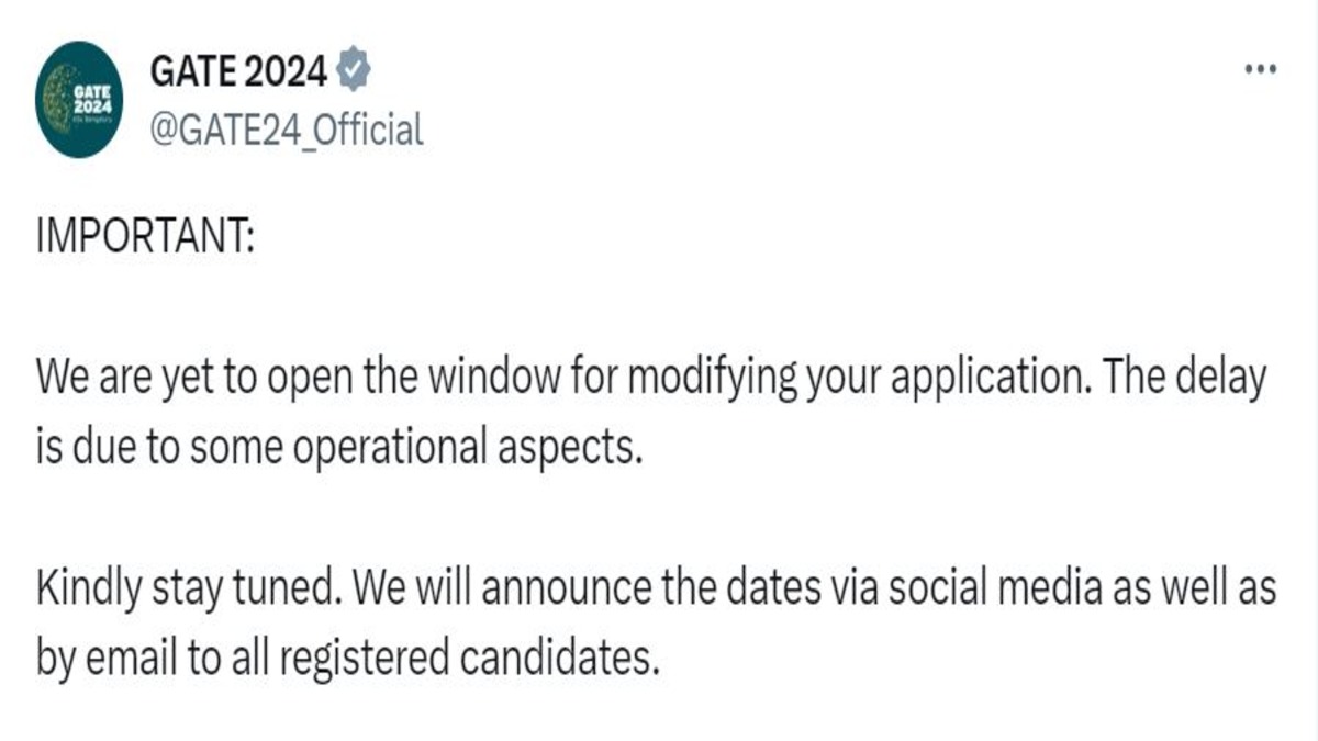 IISc has informed candidates that they will update about the opening of the GATE correction window on social media and via email. Candidates who want to make corrections to their applications can visit the official website: gate2024.iisc.ac.in, once the link is active.
