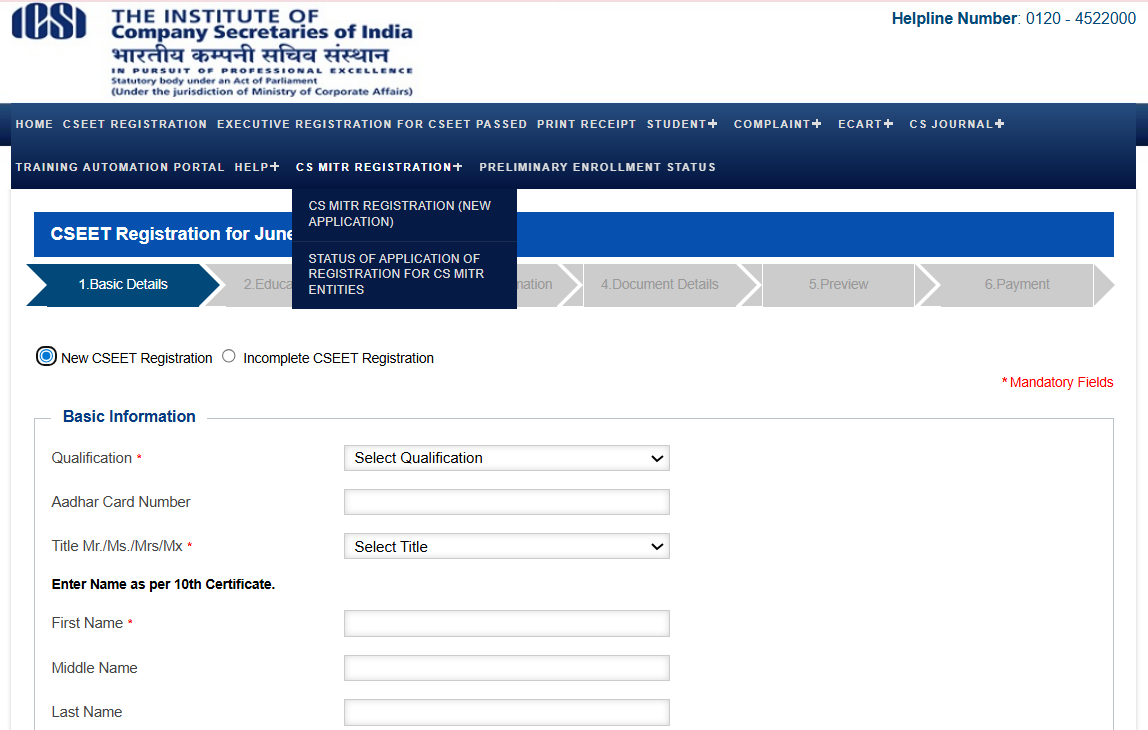 DIRECT LINK - ICSI CSEET June 2026 Registration