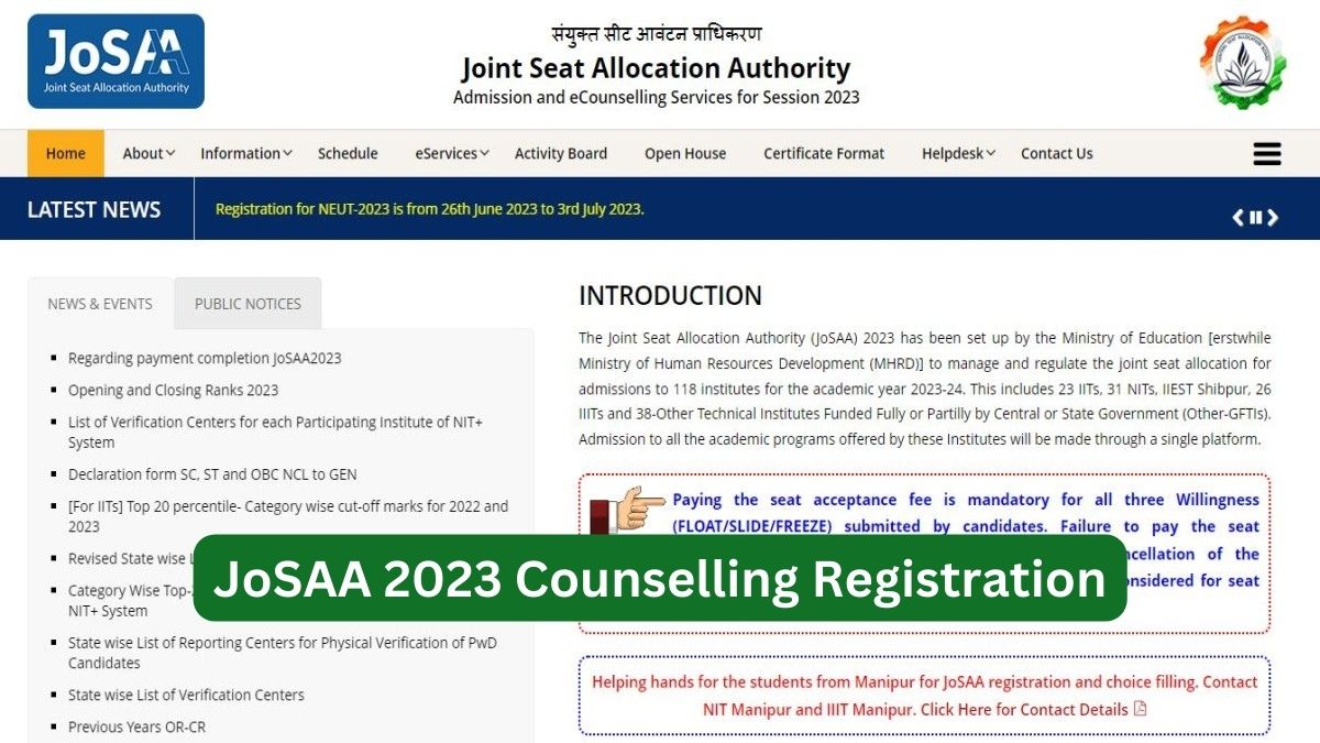 JoSAA 2023 Counselling: The Joint Seat Allocation Authority will close the counselling registration window for JoSAA round 1 today, July 4, 2023, in online mode. Those candidates who have qualified for the JEE Advanced and have registered for the JoSAA counselling can fill out the registration form through the official website: josaa.nic.in.