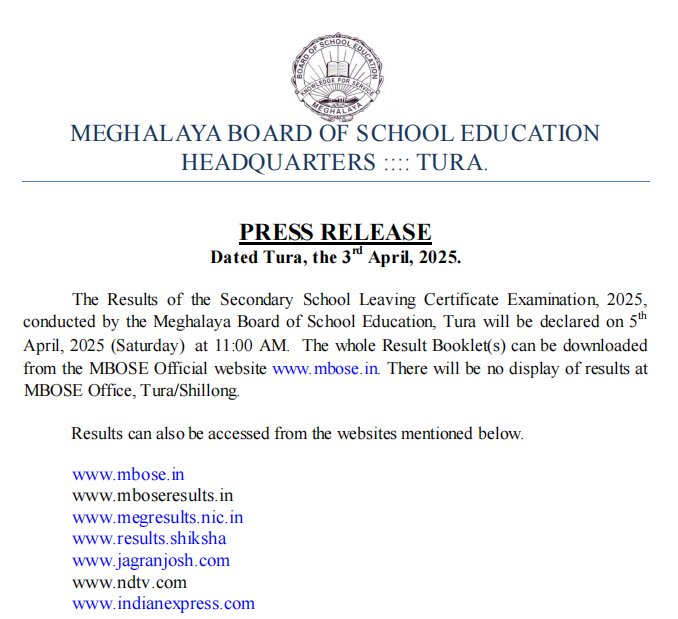Students can download the complete result booklet from the official MBOSE website at www.mbose.in. The results will not be displayed at the MBOSE offices in Tura or Shillong.