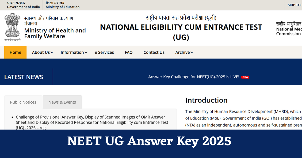 Step 2: Tap on the “Answer Key Challenge for NEET(UG)-2025 is Live” link.