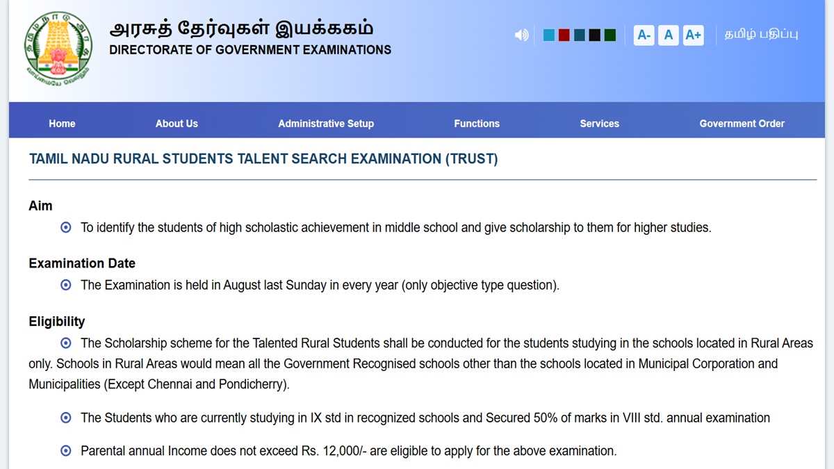 Step 2: Click on TN Rural Student Talent Search Examination section