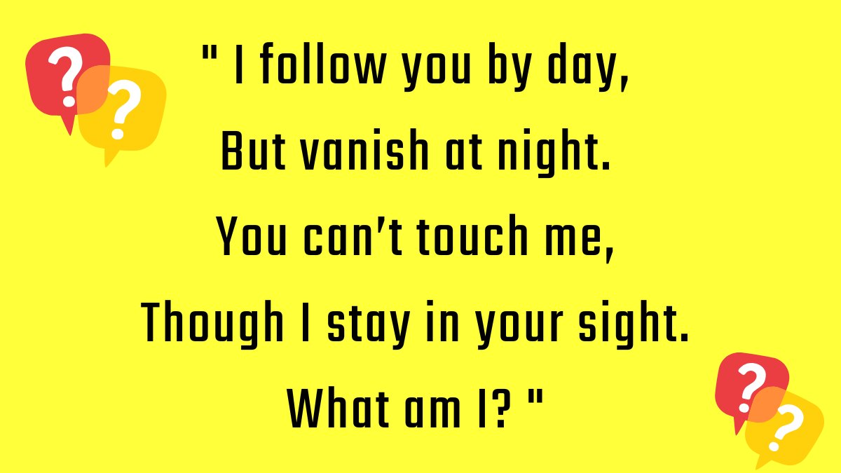 I follow you by day, but vanish at night. You can’t touch me, though I stay in your sight.