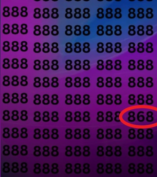 Do you have a keen eye for detail? Put your observation skills to the test with this mind-boggling optical illusion. The challenge? Only those with exceptional vision can spot the hidden odd number in this sequence of '888'. Think you’ve got what it takes? Give it a try and see if you can uncover the secret!