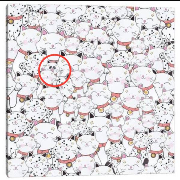 One popular optical illusion is the "hidden panda" puzzle. In this puzzle, there is a panda hidden among a group of cute cats. The challenge is to find the [panda within a certain amount of time, usually 13 seconds.